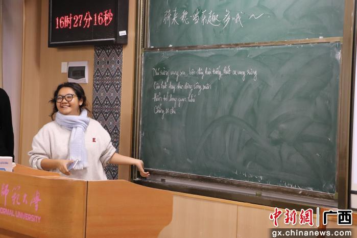 中新网广西新闻 12月22日电 (李琪然)广西师范大学教育发展基金会边疆民族非遗传承教育项目“面向东盟留学生的‘刘三姐歌谣’传承与跨文化交流”活动,近日在广西华侨学校举行。此次活动以“歌圩传情,非遗寻根”为主题,旨在以“刘三姐歌谣”为纽带,搭建中国学生与东盟学生文化交流的桥梁。